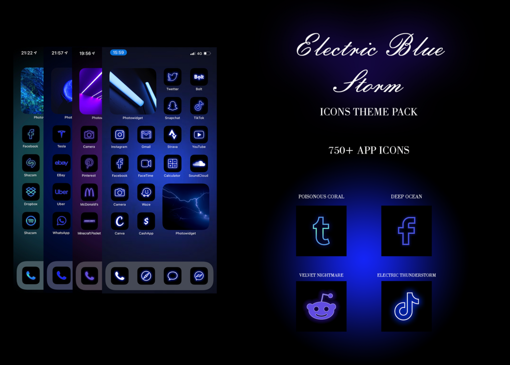4 Packs with Neon Electric blue Glow, + 8 matching widgets + 8 original wallpapers